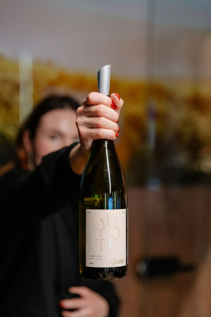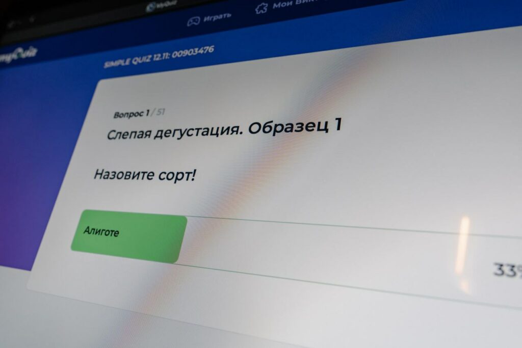 Формат игры в одной сети винотек позволил включить в квиз ещё и слепую дегустацию. Было пять раундов вопросов и три раунда в виде дегустации. Все пробовали одни и те же вина. Кстати, российские, из портфеля Большого русского вина. Алиготе от Усадьбы Маркотх, Петрикор красный от Шумринки и Саперави от Мезыби. Вопросы тоже строились вокруг отечественных виноделов и хозяйств.