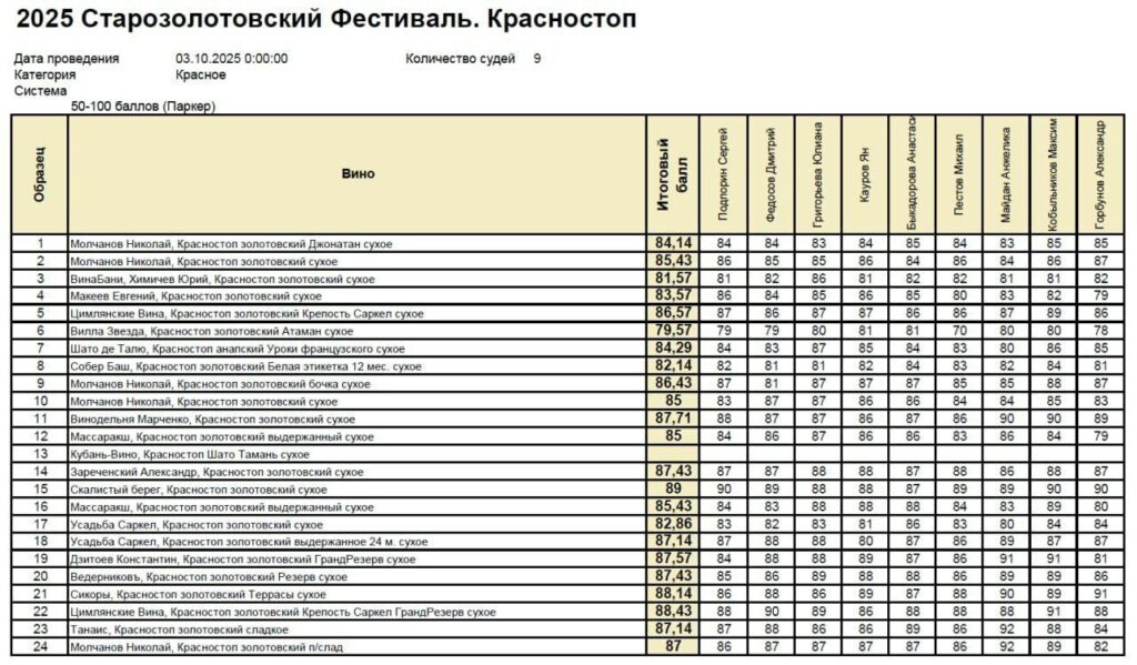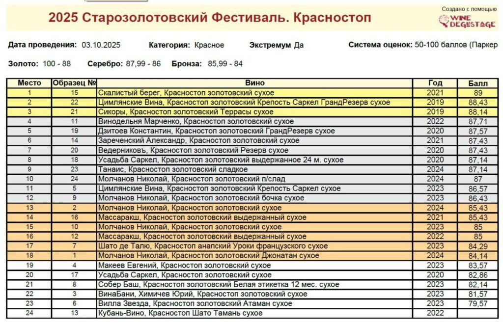 Представляем внимаю результаты дегустации (3 октября 2025 года) автохтонов на закрытом фестивале в Старозолотовском (КЗ-Красностоп Золотовский):