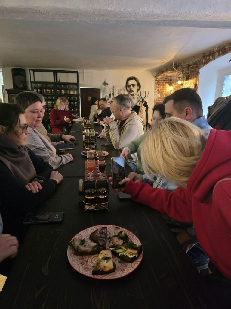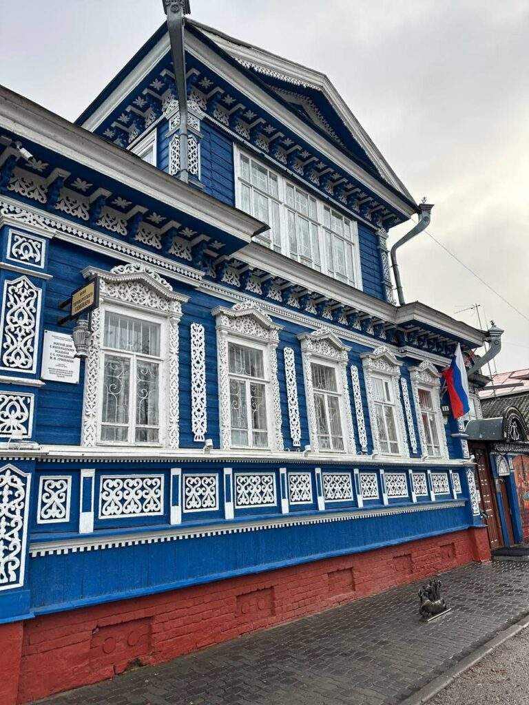 Это было в пятницу, 21 ноября, а 22 ноября мы уехали в Городец. В автобусе случился настоящий винный квиз от Андрея, потому полтора часа пролетели незаметно. Впереди нас ждали две экскурсии. По городу нашу группу водила Наталья, представитель культурного центра «Лев и вишня». Это было фантастические интересно! Рассматривая только одни наличники, можно многое рассказать об истории места. Городец, конечно, невероятный. Вторая экскурсия проходила в музее городецкой росписи. Это уникальное, ни на что не похожее искусство, родившееся именно в этих местах. А какой там музей! Ещё год назад я приезжал сюда, тогда все экспонаты ютились в небольшой комнате на фабрике городецкий росписи. Теперь же это настоящий дворец!
