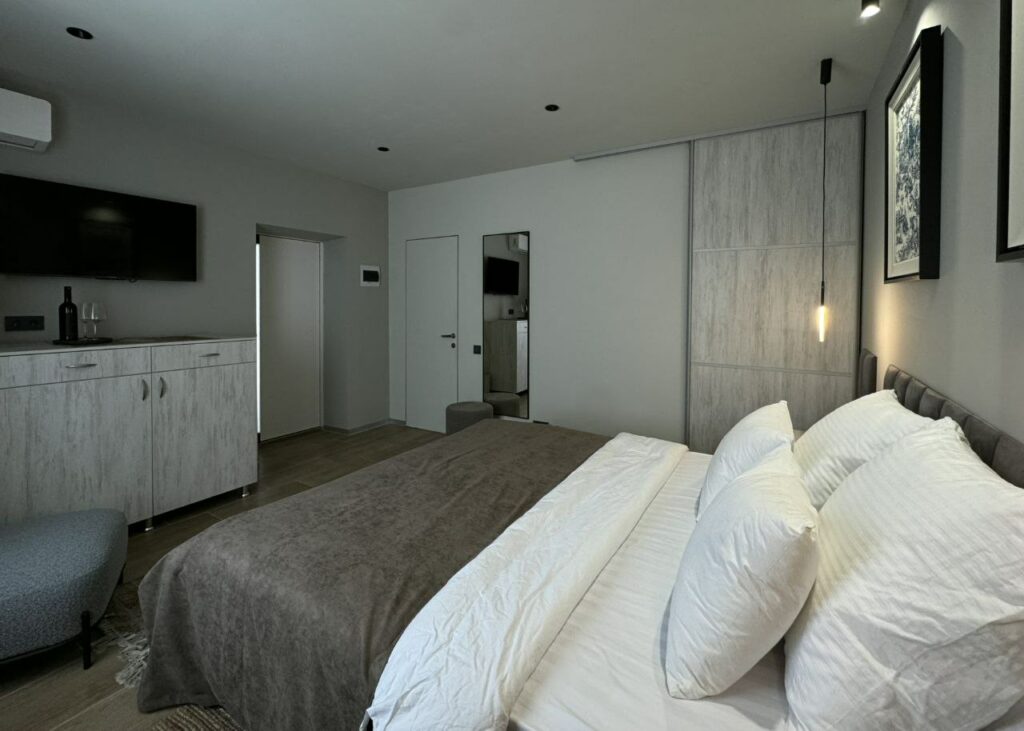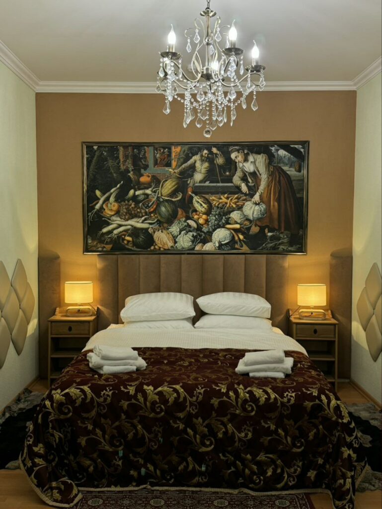 - Номер 1 с большой двуспальной кроватью и доп.местом. Вместимость: 2+1 чел. Стоимость: ₽6000