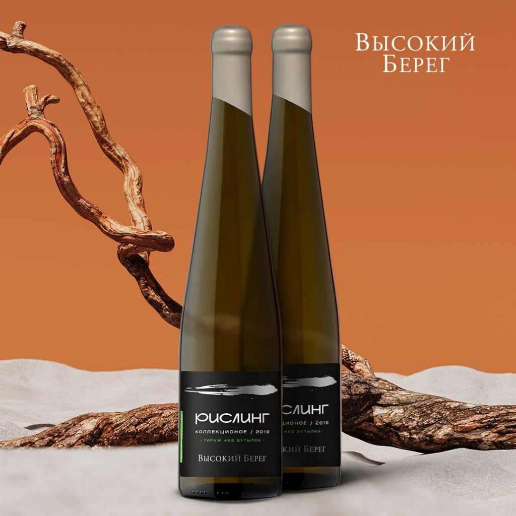 «Высокий берег. Рислинг. Зеленая серия» (2018) — коллекционное сухое белое вино. Часть вина выдержана на тонком дрожжевом осадке в контакте с альтернативным дубом, другая — более 12 месяцев в дубовой бочке.